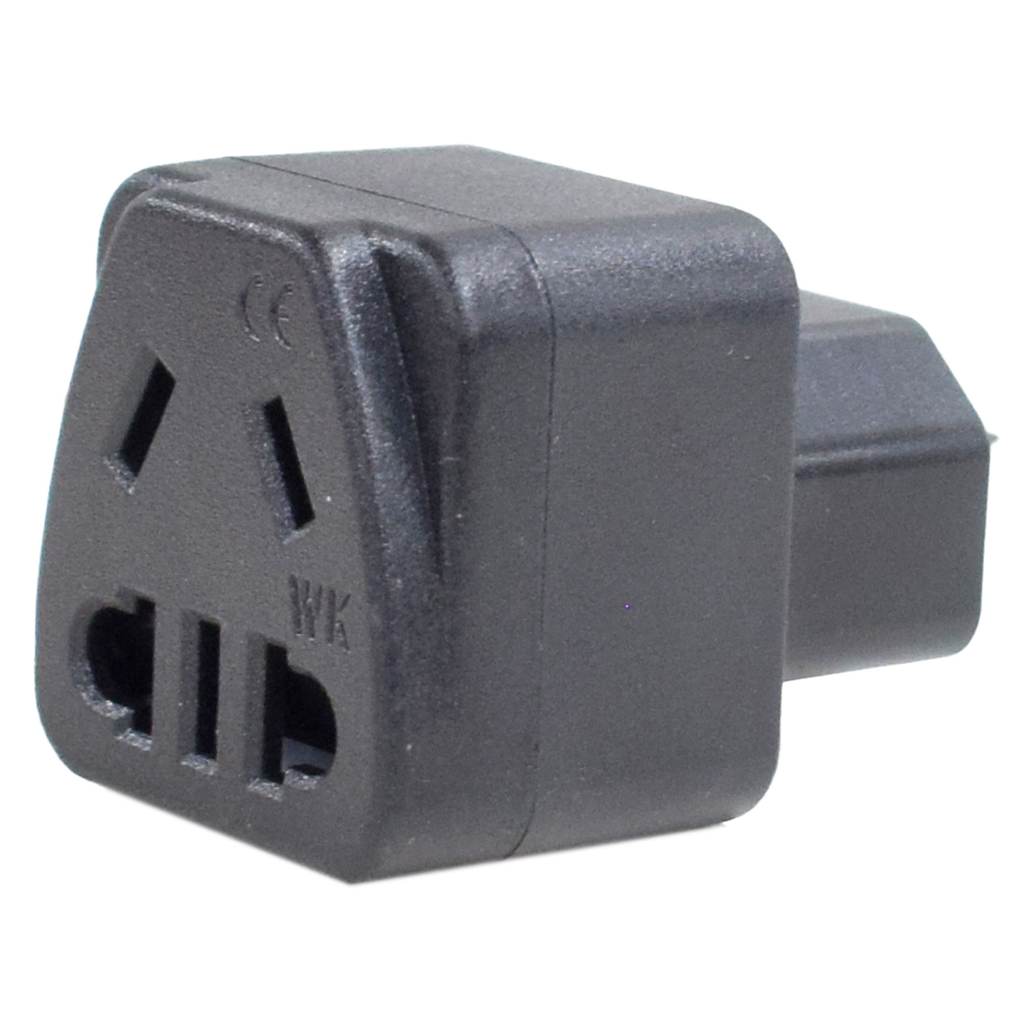 Cet adaptateur d’alimentation C14 vers prise universelle transforme une entrée mâle IEC C14 (souvent présente sur les onduleurs, PDU ou blocs d’alimentation PC) en une prise secteur universelle compatible avec les fiches européennes, américaines, britanniques, australiennes, etc.