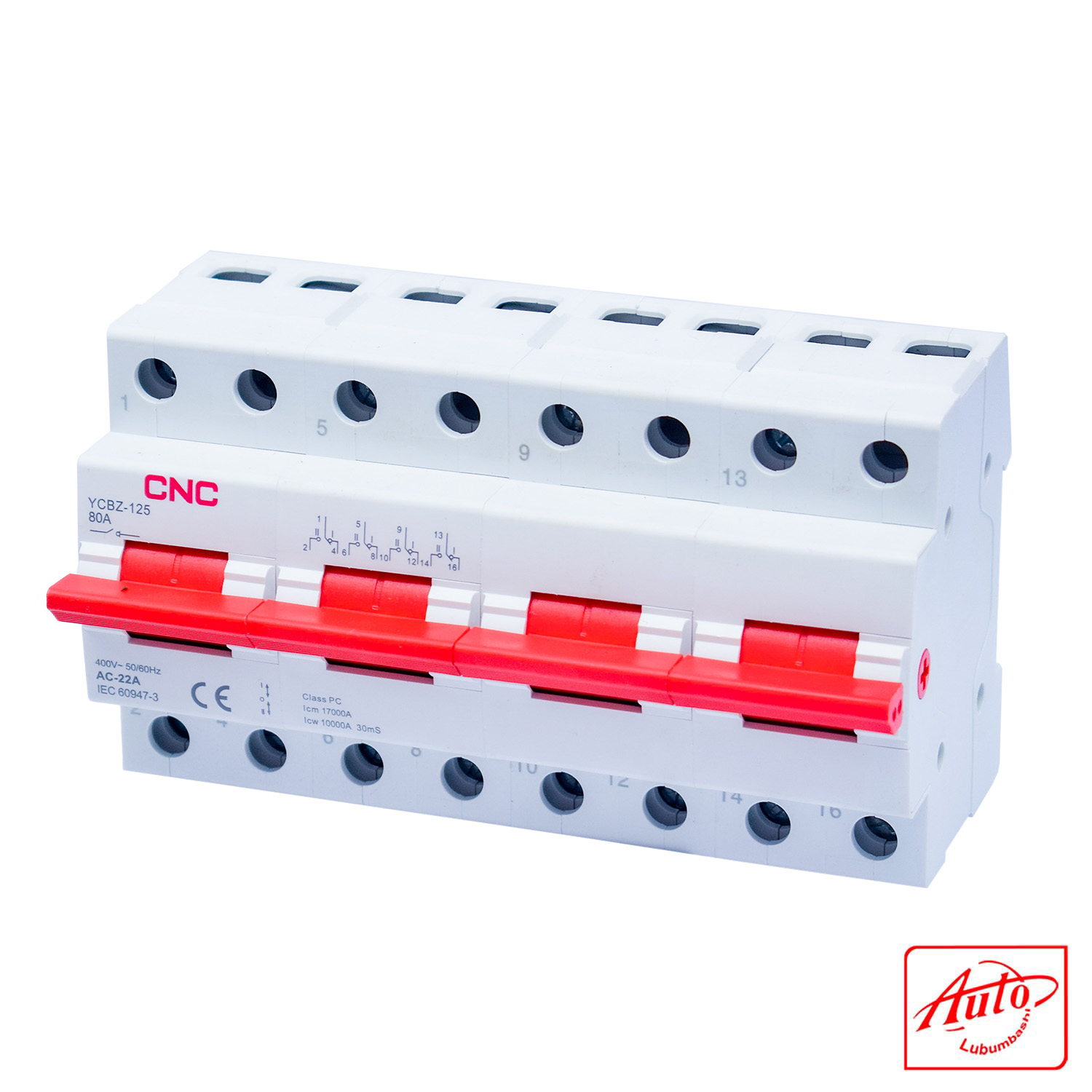 Interrupteur de Commutation CNC YCBZ-125 4P 80A – Transfert Manuel, 230/400V~, Montage sur Rail DIN
