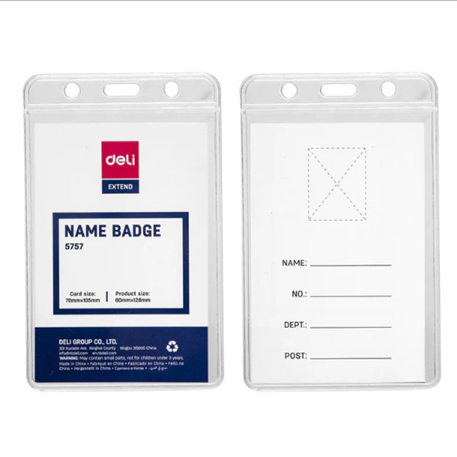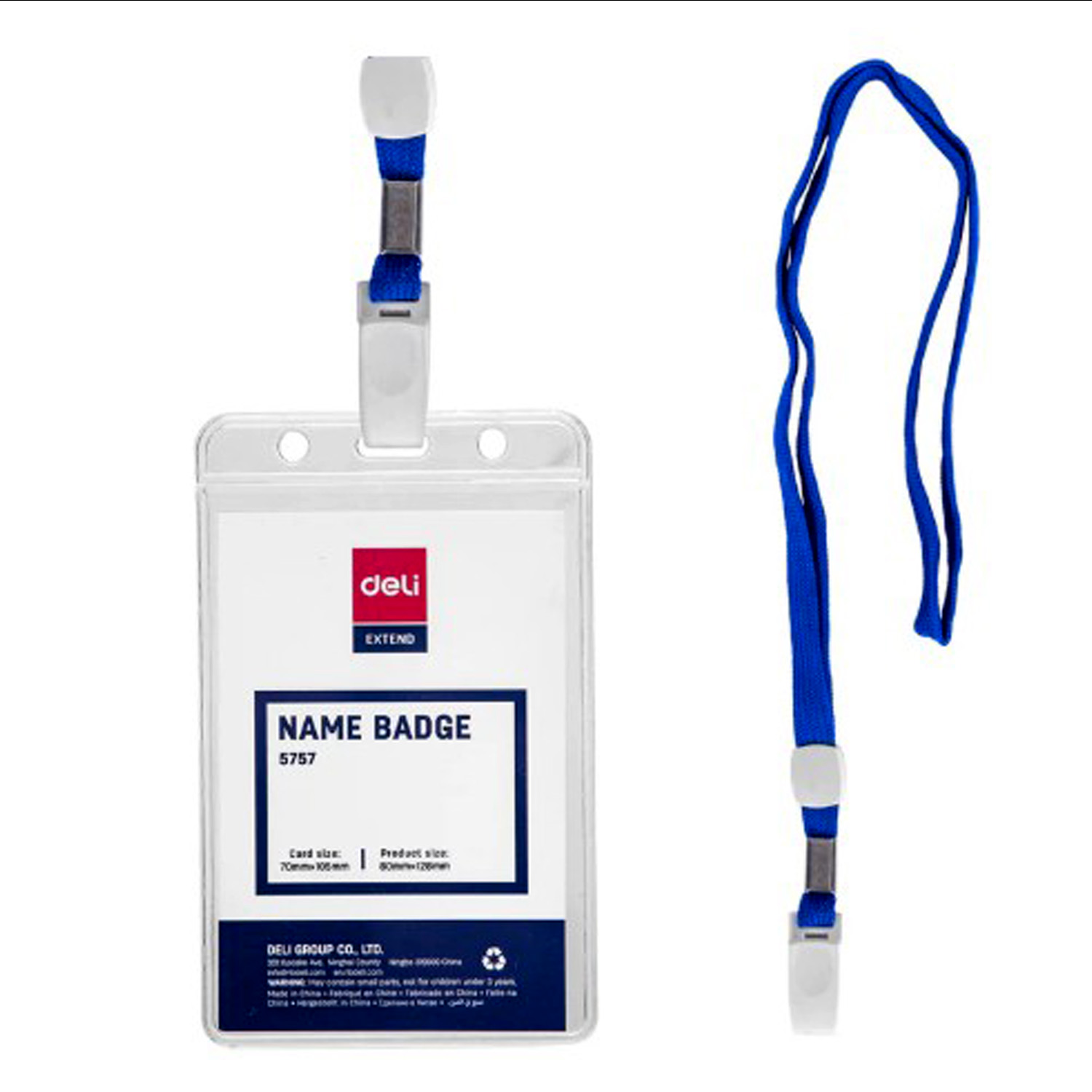 Le porte-badge vertical Deli E5757 est conçu pour un usage professionnel ou événementiel. Fabriqué en PVC souple et transparent, il offre une excellente visibilité et une grande durabilité. Il convient aux cartes de format 68 × 95 mm et est livré avec une lanière amovible pour un port confortable. Chaque lot contient 50 pièces, parfait pour les bureaux, écoles ou conférences.