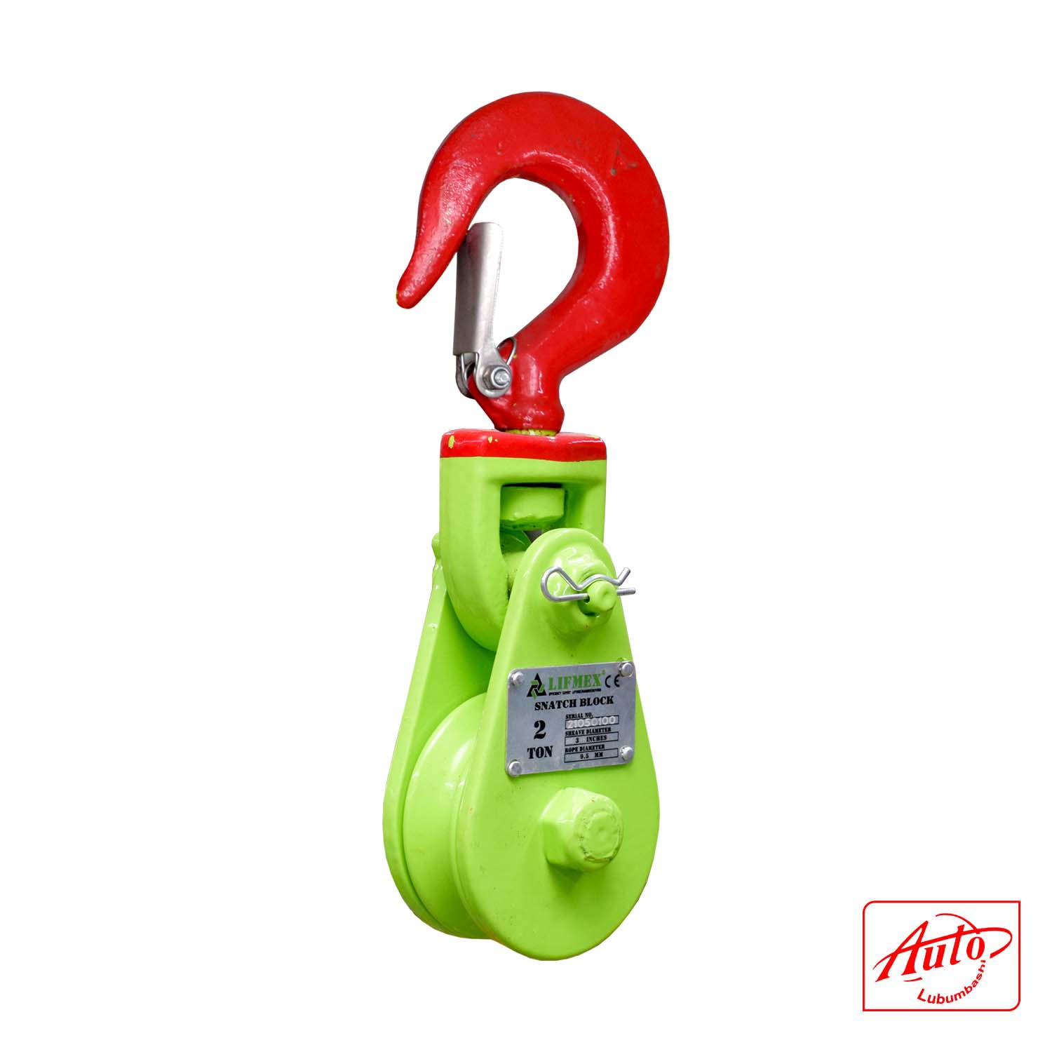 Équipée d’un crochet forgé et d’un réa de 3 pouces, elle est adaptée à l’utilisation avec cordages ou câbles dans les applications de levage et de manutention.