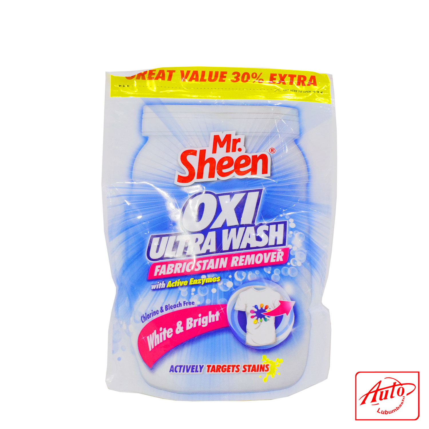 Mr Sheen Oxi Ultra Wash White est spécialement formulé pour raviver et protéger les tissus blancs, lavage après lavage. Grâce à ses enzymes actives et à ses agents nettoyants à base d'oxygène, il élimine les taches tenaces même à basse température (jusqu'à 20 °C), ce qui le rend économe en énergie et doux pour les textiles.