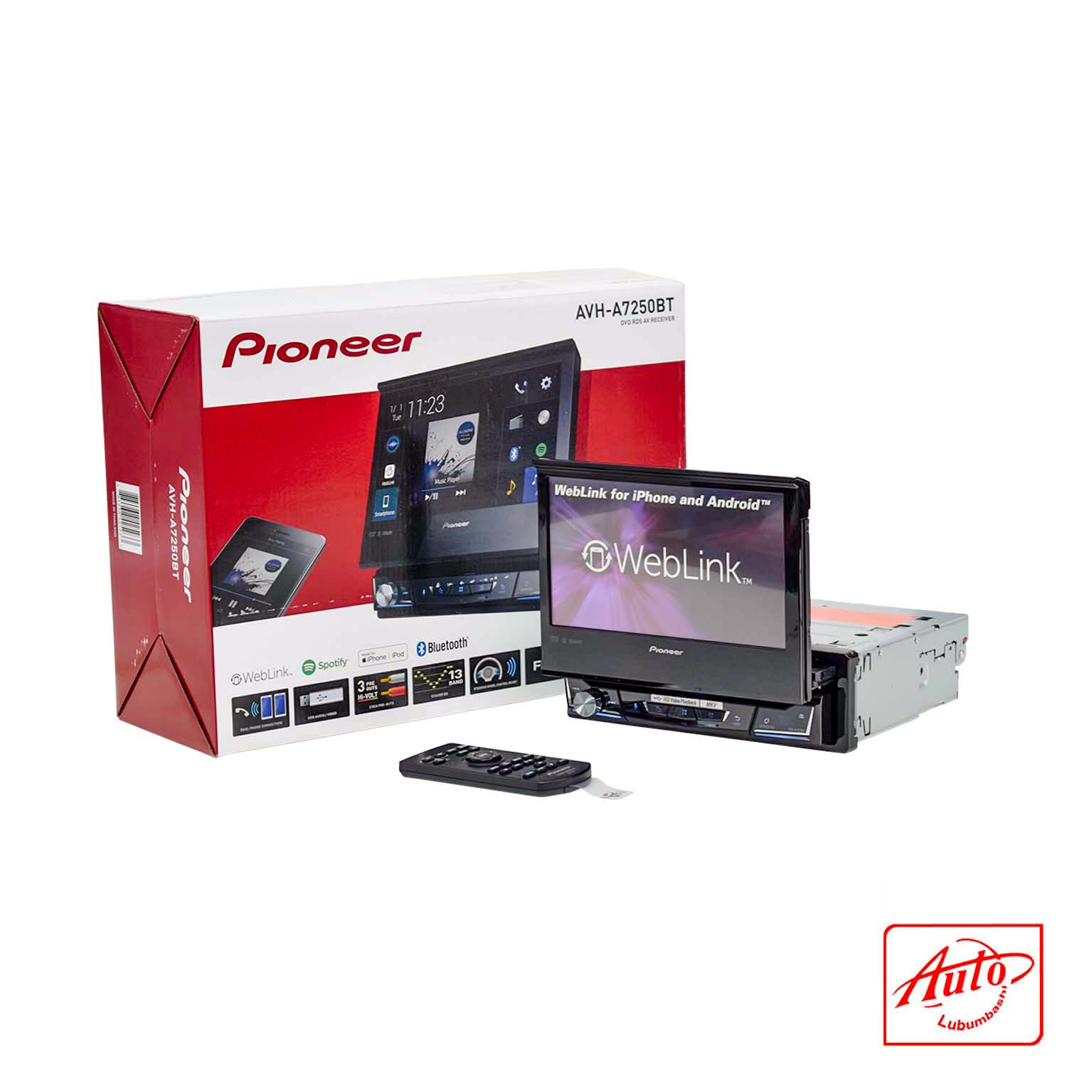 Le Pioneer AVH-A7250BT est un autoradio multimédia haut de gamme conçu pour offrir des fonctionnalités avancées dans un format compact simple DIN. Son écran tactile motorisé de 7 pouces offre une interface large et intuitive tout en optimisant l'espace sur le tableau de bord.