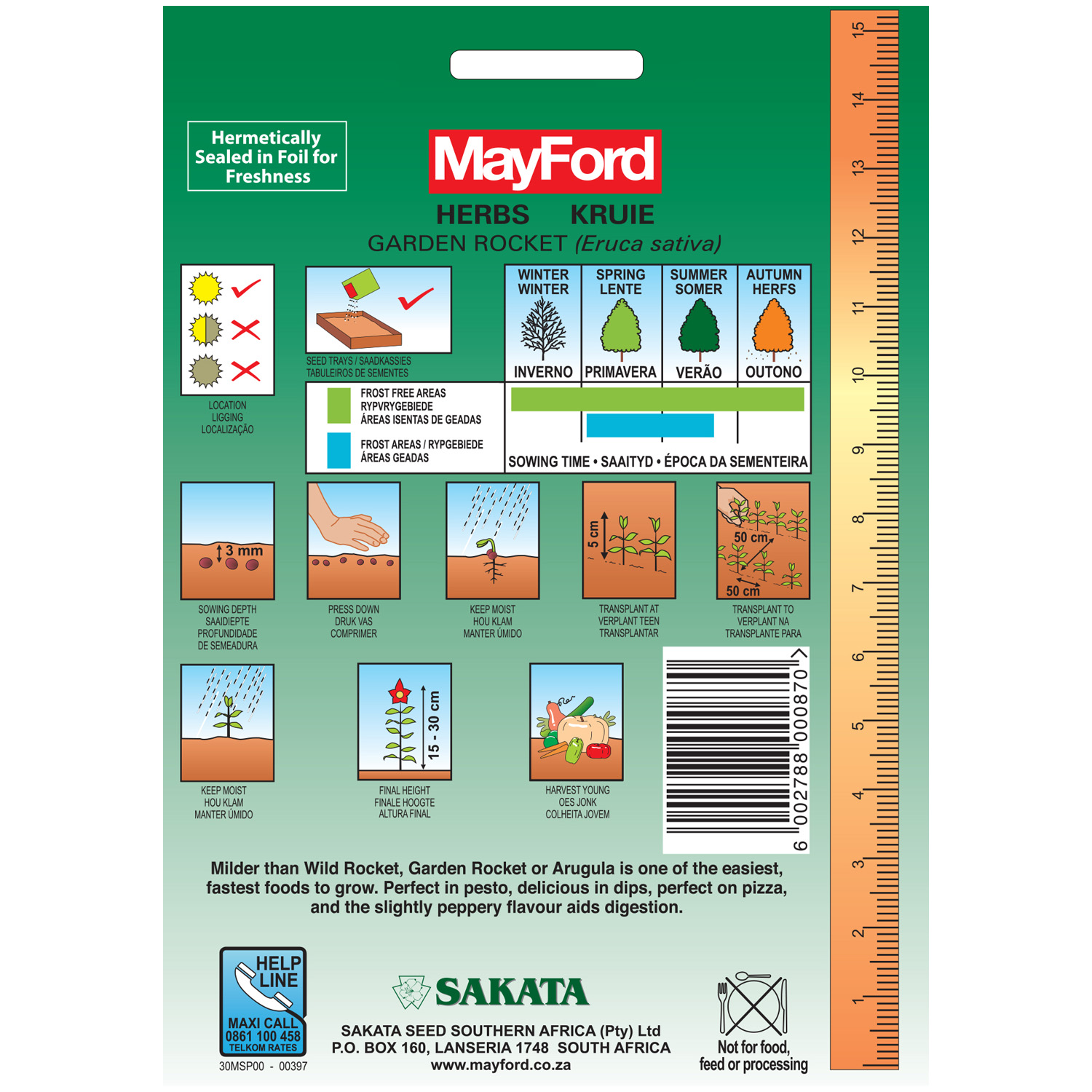 La roquette MayFord est une herbe à croissance rapide offrant une saveur légèrement poivrée, idéale pour divers plats. Elle prospère dans les zones sans gel, et peut être semée dans des plateaux de semis ou directement dans le sol du jardin. Cette plante atteint une hauteur finale de 15 à 30 cm, et elle est meilleure lorsqu'elle est récoltée jeune pour des feuilles tendres et fraîches. Parfaite pour les jardins domestiques, elle nécessite une humidité constante et une légère pression dans le sol pour une germination optimale.