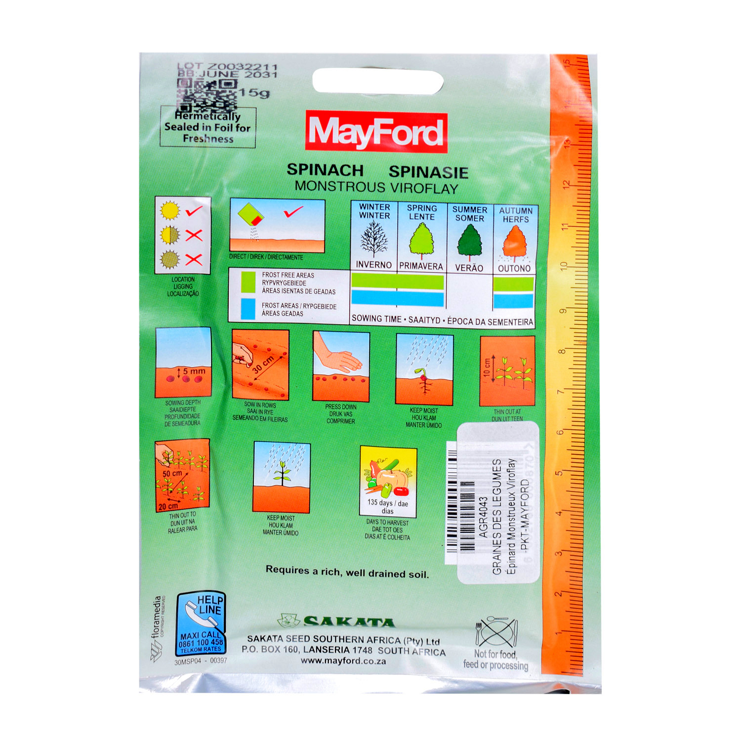 Profondeur de semis | 15 mm |