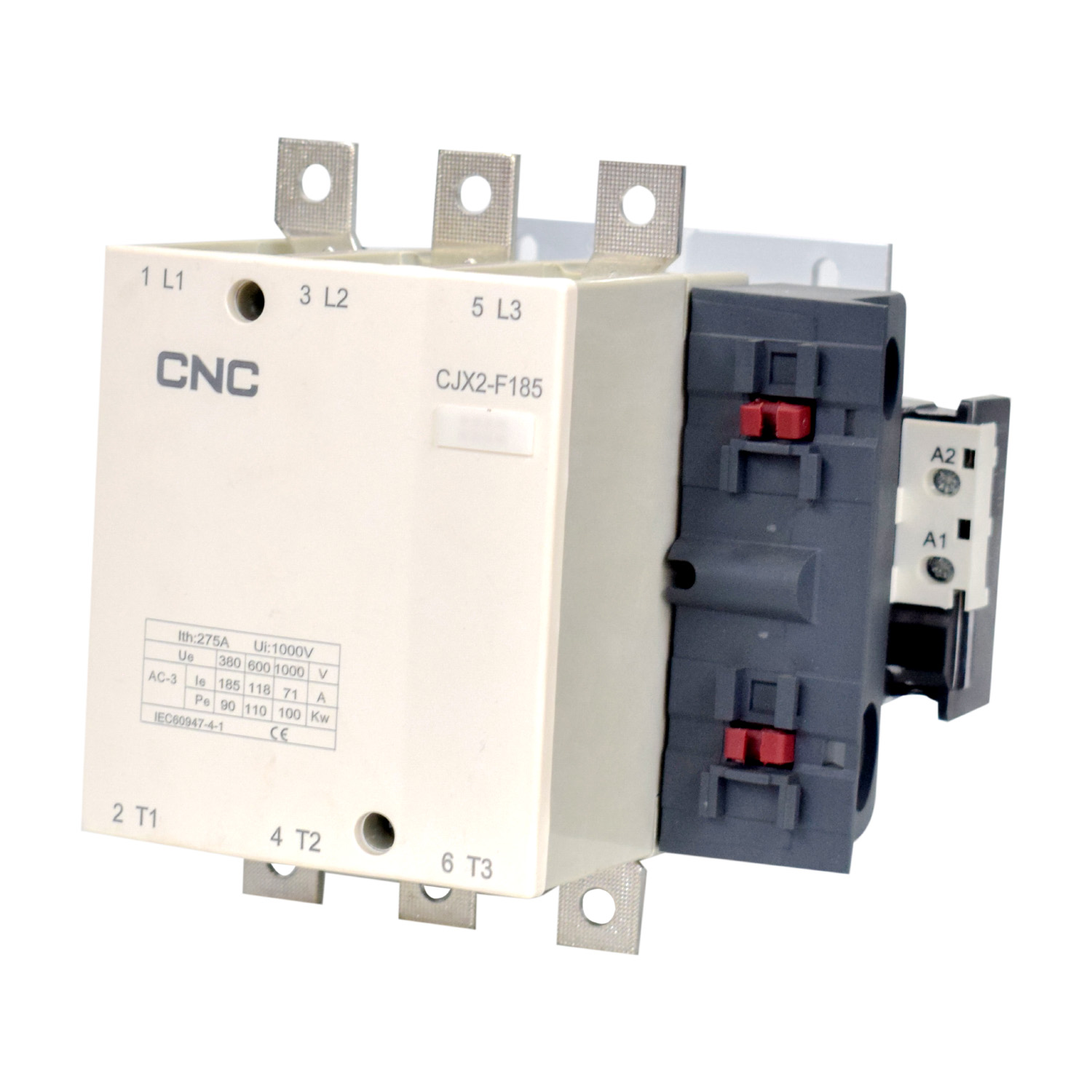 This contactor features three main poles (3P) and optional auxiliary contacts for control circuits. It complies with IEC 60947-4-1 standards, ensuring safety, reliability, and long service life. The CJX2-F185 can be mounted on DIN rails or panels, and is often paired with thermal overload relays to form complete motor starter assemblies.