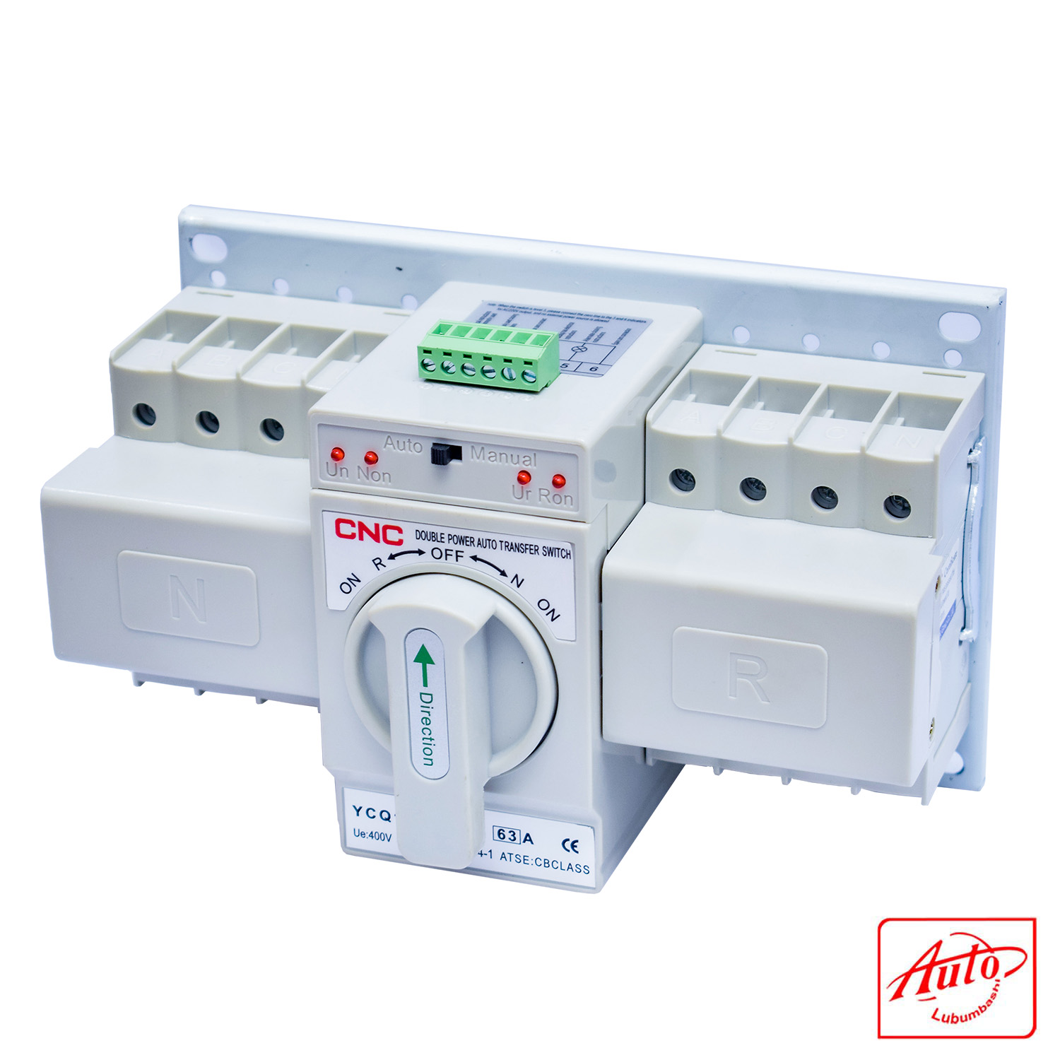 The CNC YCQ1B-63/4P is a four-pole automatic transfer switch (ATS) designed to switch between two power sources—typically the main grid and a generator—to maintain uninterrupted power. With a rated current of 63A, it supports automatic and manual switching, and operates at AC400V 50/60Hz.