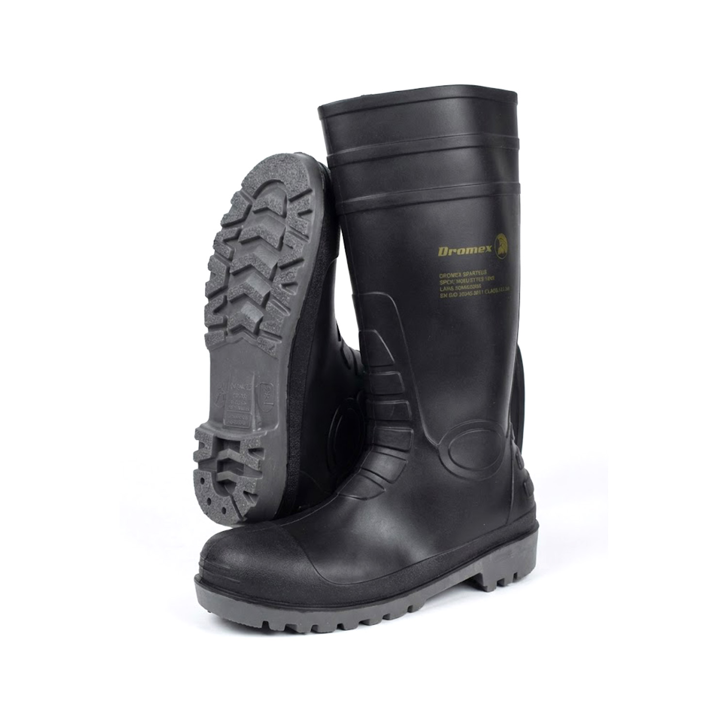 The Dromex Sparticus DF-SP-STCM Gumboots are supplied with a durable PVC/Nitrile construction and reinforced protective features.