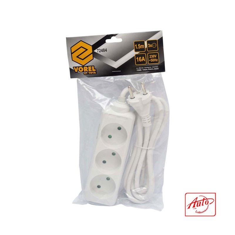 Classic strip extension without earthing. Plastic socket housing. White color. H05VV-F 2G cable 1.00mm2, 10A – Type of insulation: VV-F