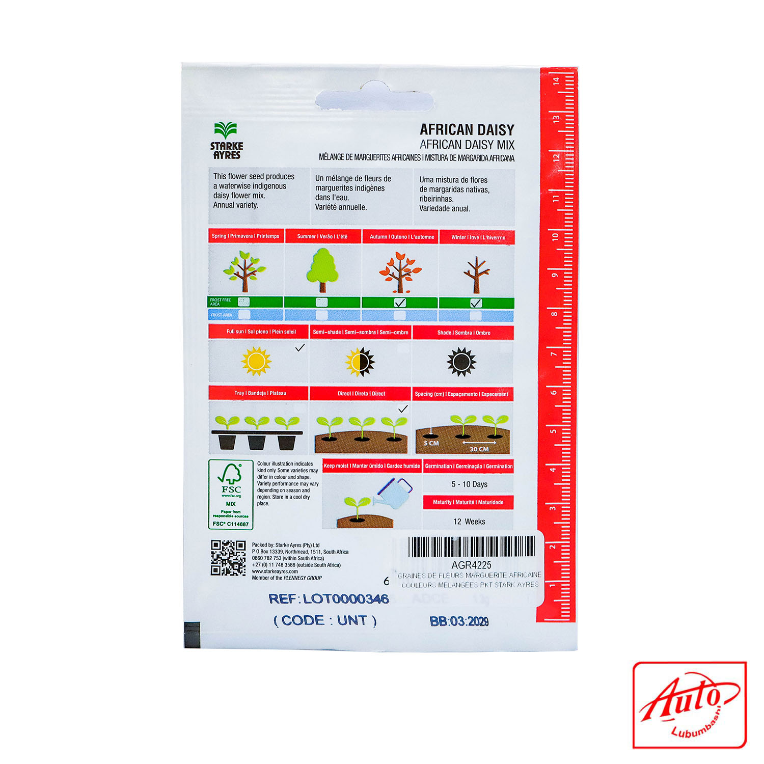 African Daisy Mix is a low-maintenance, water-wise flower that produces a stunning blend of indigenous daisy blooms. This annual variety is perfect for full sun, semi-shade, or shaded areas, making it a versatile addition to gardens, borders, and containers. With a maturity period of 12 weeks, it provides continuous flowering throughout the season. The drought-resistant nature of these daisies makes them ideal for frost-free areas, ensuring long-lasting beauty with minimal care.
