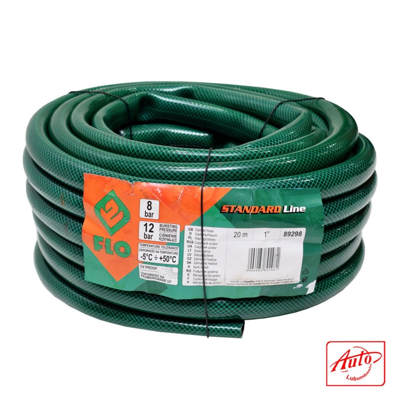 3-layer garden hose made of flexible plastic with polyestercross braid. Operating range from -10 to 50 ° C.