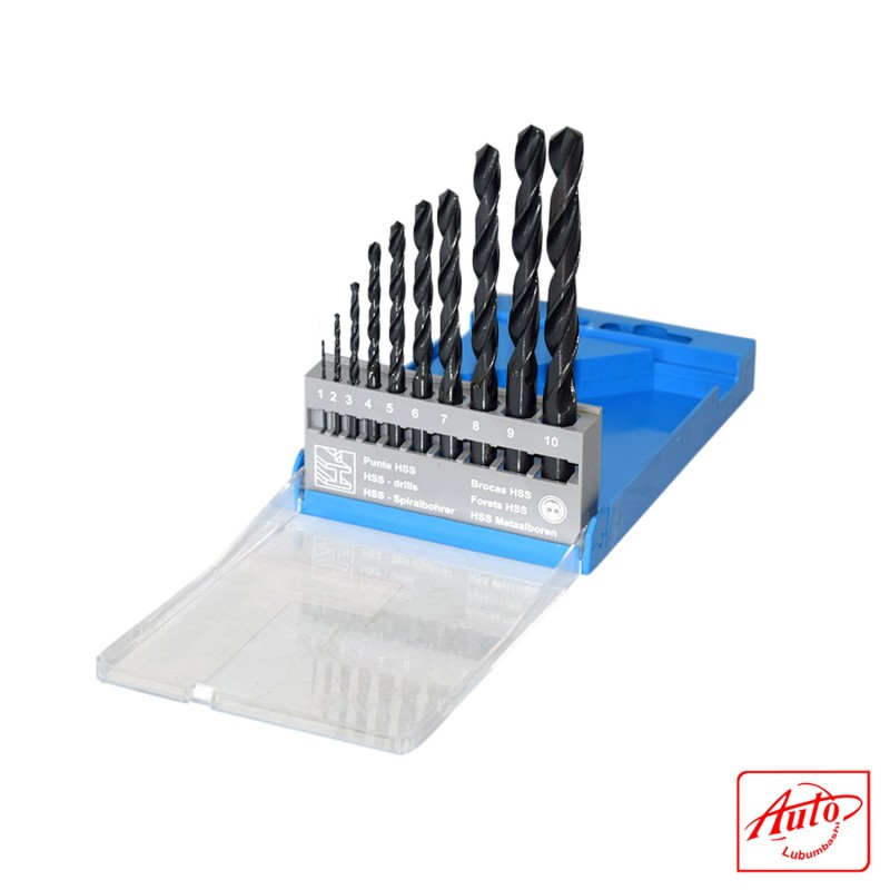 The KRINO 10-piece drill bit set contains bits sized from 1mm up to 10mm. These bits have a black oxide finish for greater wear protection and longevity of the bit. The parabolic flute design also gives these bits greater strength. They have a 135-degree split-point design that reduces slip and walking and allows for easier no-slip starting. The bit set includes a sturdy tough case container to keep bits organized. Tough cases include a sliding soft-grip lock that keeps the case closed securely to prevent lost bits. These bits are ideal for drilling in metal, wood, and plastics.