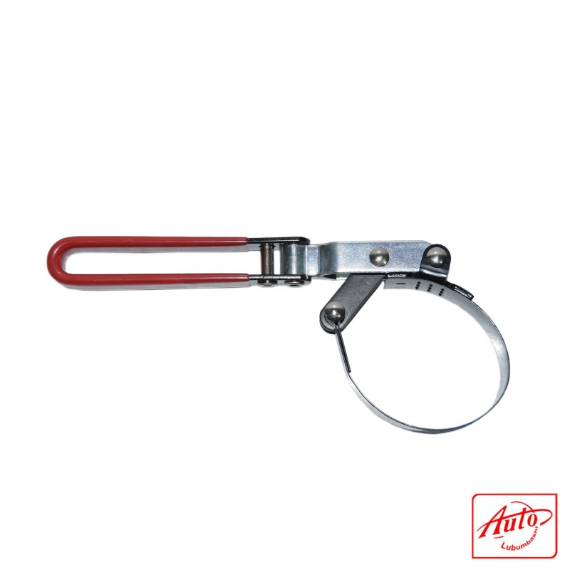 The oil filter key is made of a steel clip band that has protruding elements which restraint the key from sliding on the dirty filter. It features a handle covered with rubber and fitted with the joint for operation where there is a limited access. The joint and the clamping mechanism can tighten and loosen up according to your job, similar to a ratchet. The change of the filter is done fast and easy.