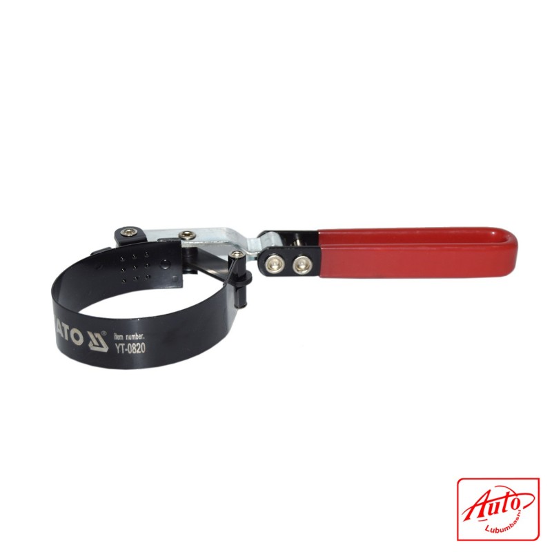 The oil filter key is made of a steel clip band that has protruding elements which restraint the key from sliding on the dirty filter. It features a handle covered with rubber and fitted with the joint for operation where there is a limited access. The joint and the clamping mechanism can tighten and loosen up according to your job, similar to a ratchet. The change of the filter is done fast and easy.