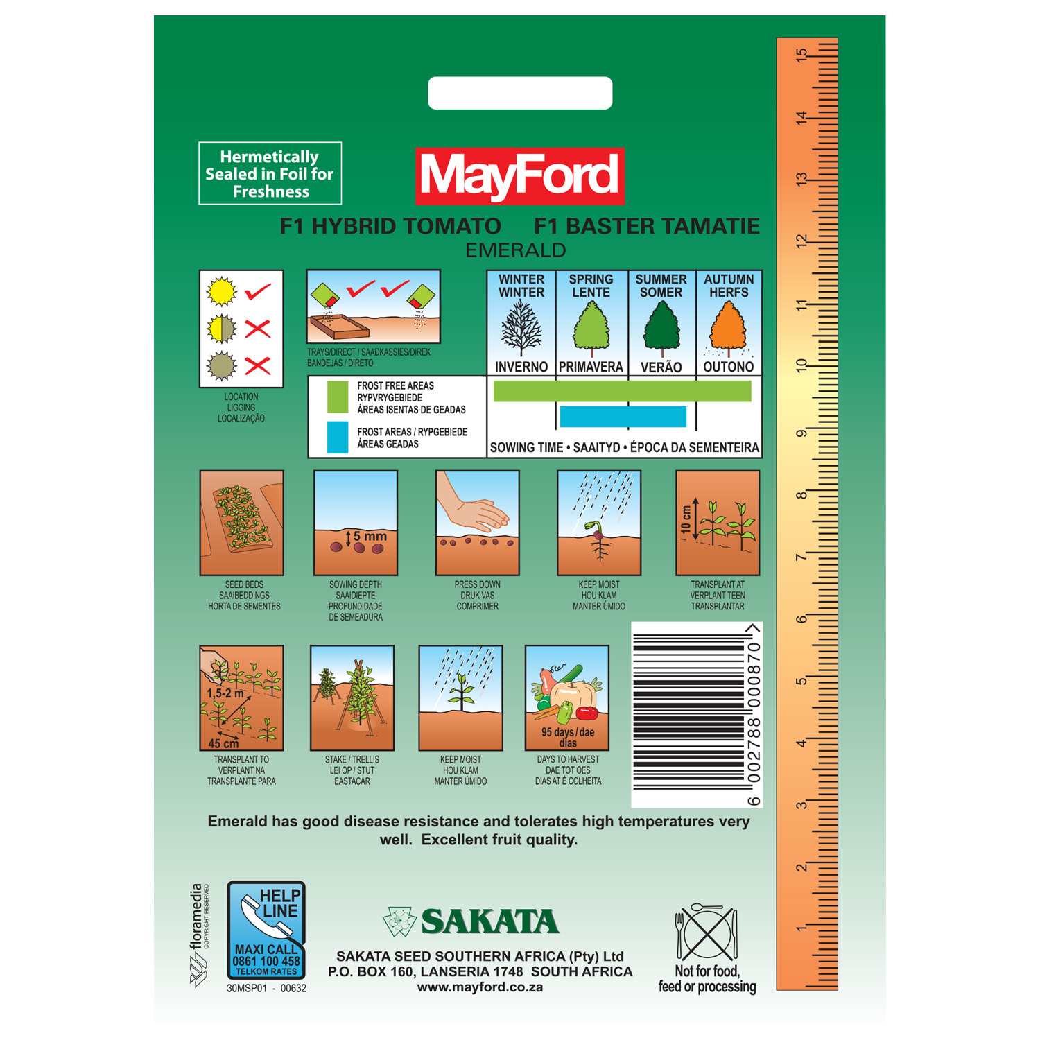 The MayFord F1 Hybrid Emerald Tomato is a high-performing, disease-resistant variety, ideal for home gardens and commercial farming. It is best sown in trays or seed beds, with a sowing depth of 5 mm, ensuring strong early development.