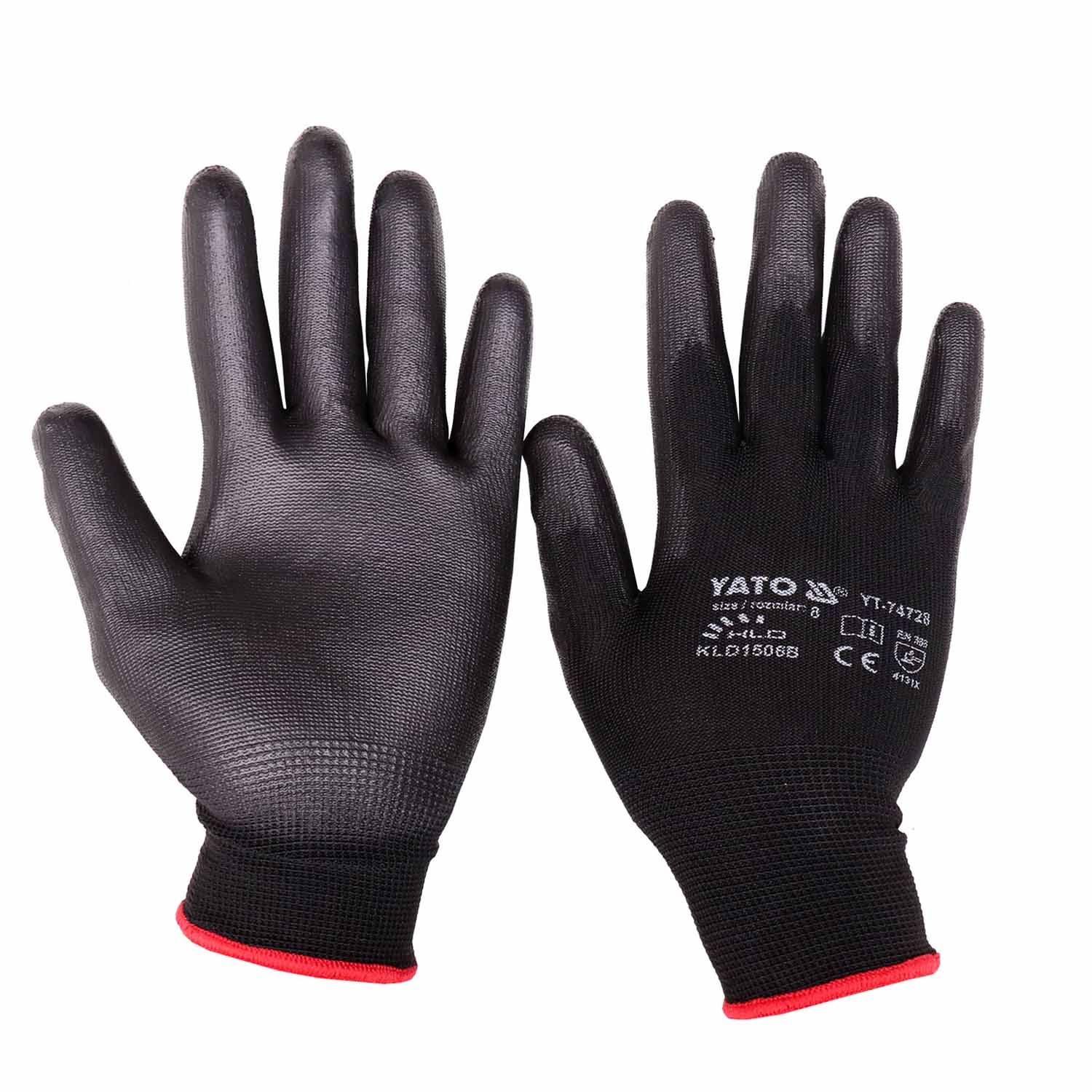 Protective work gloves made of black nylon, coated in the gripping part with black polyurethane. Thicker than usual, coating layer and high quality polyurethane provide the highest abrasion resistance according to EN 388. The seamless design made of high quality nylon is increased resistance to tearing and maintaining flexibility for a long time. A small 15g stitch, i.e. 15 stitches per inch, is a lower weight and even better adhesion to the hand. Casting part: coating from PU outer part: nylon stitch: 15g flexible cuff