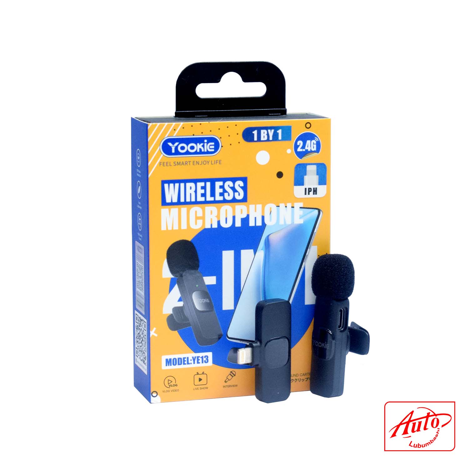 The YOOKIE YE13 is a 1-by-1 wireless microphone system designed for iPhone users who need clear, reliable audio on the go. With 2.4GHz digital transmission, it offers low latency (30ms) and stable connectivity up to 30 meters. The Lightning receiver makes it compatible with iPhones and iPads. The microphone features adaptive noise reduction, 360° HD surround pickup, and a built-in rechargeable battery with up to 5–6 hours of use. Perfect for vlogs, interviews, live streaming, and video production, the YE13 is plug-and-play and includes a charging-enabled receiver for uninterrupted recording.