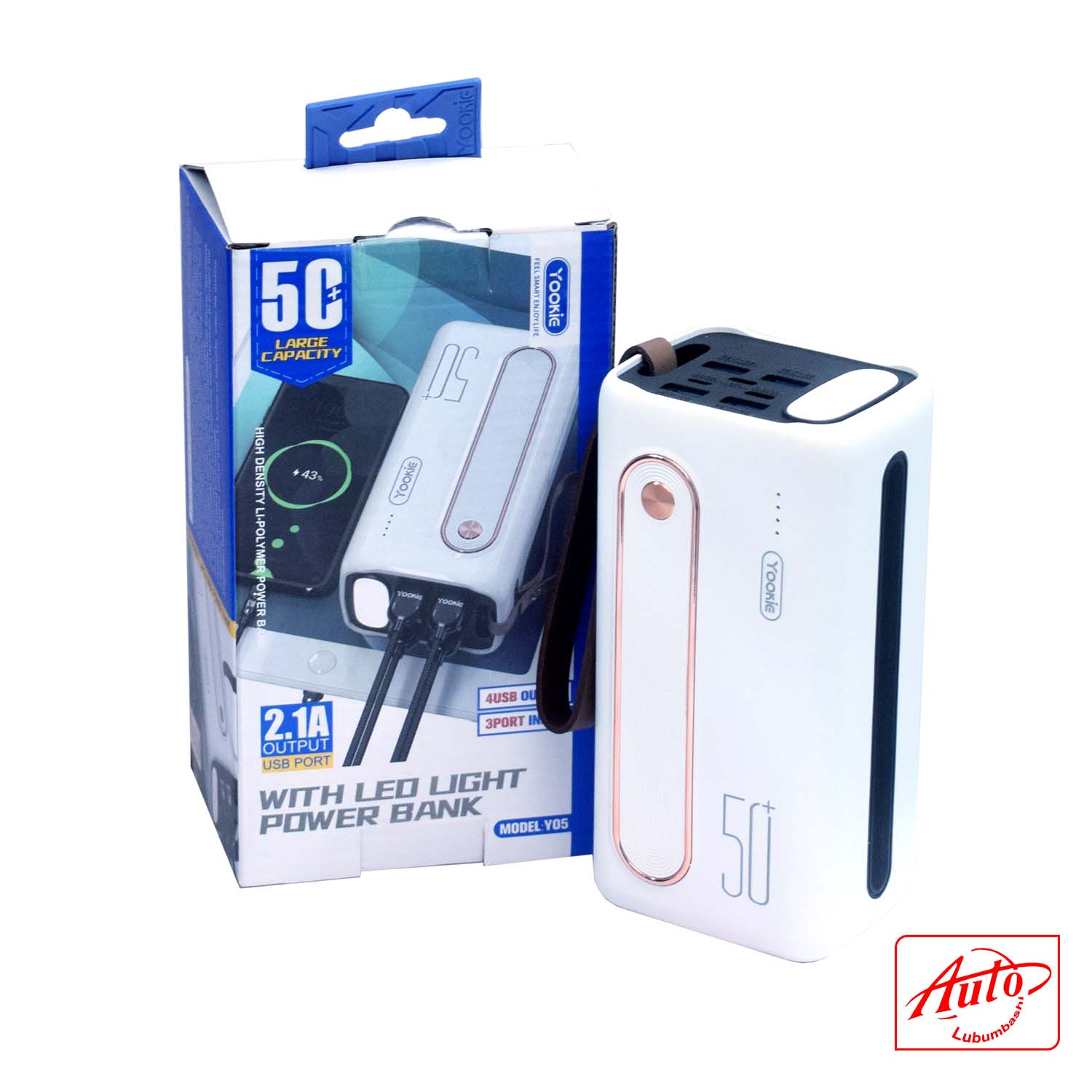 The YOOKIE YO5 Power Bank is built for users who need serious backup power. With a massive 50000mAh capacity, it can charge multiple devices multiple times. It features 4 USB output ports with up to 2.1A output, and 3 input ports (Micro USB, Type-C, and Lightning) for flexible recharging. The high-density Li-polymer battery ensures long-lasting performance and safety. A built-in LED light adds convenience for nighttime use or emergencies. The smart chip inside regulates current flow to protect your devices. With CE certification and a rugged design, it’s ideal for travel, outdoor use, and heavy-duty charging needs.